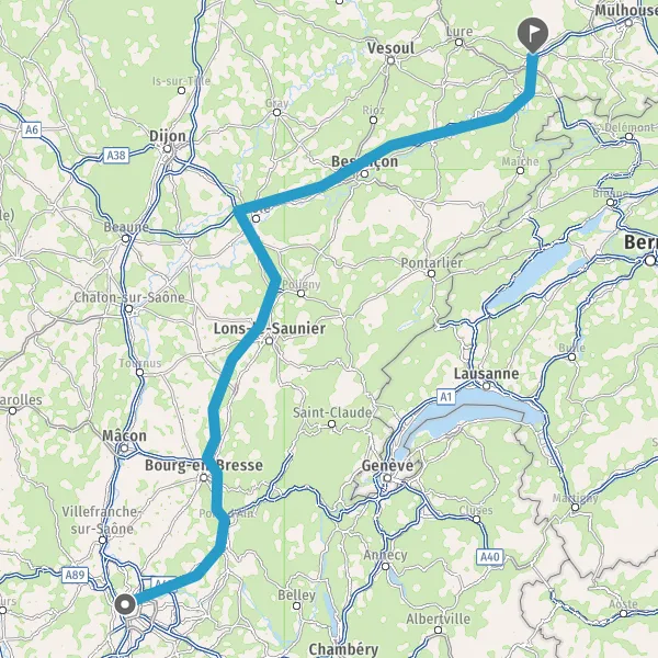 Prendre à droite et rejoindre A36 E60. Continuer sur 135 kilomètres