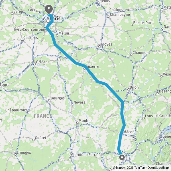 Prendre à droite et rejoindre A6. Continuer sur 294 kilomètres