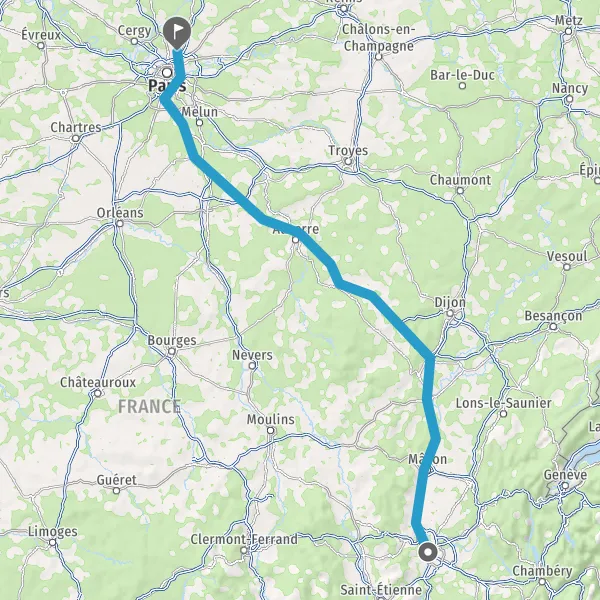 Prendre à droite et rejoindre A6. Continuer sur 294 kilomètres