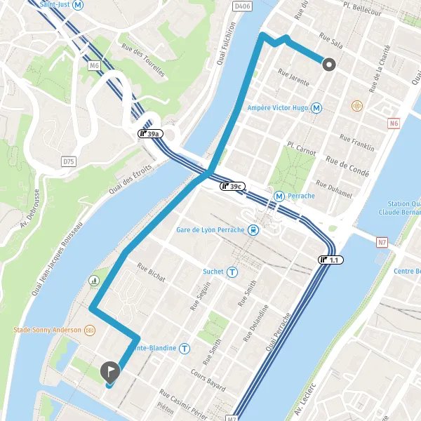 Avec le mode voiture, vous pouvez configurer vos options (type de véhicule, autoroute ou non, péage ou non, distance la plus courte), tout en ayant accès aux infos de circulation grâce à notre service d'info-trafic en temps réel. Ainsi faites des économies sur le coût ou la durée de votre voyage, en trouvant le trajet 2e Arrondissement, Lyon 59 Rue Denuzière, Lyon adapté à vos besoins.