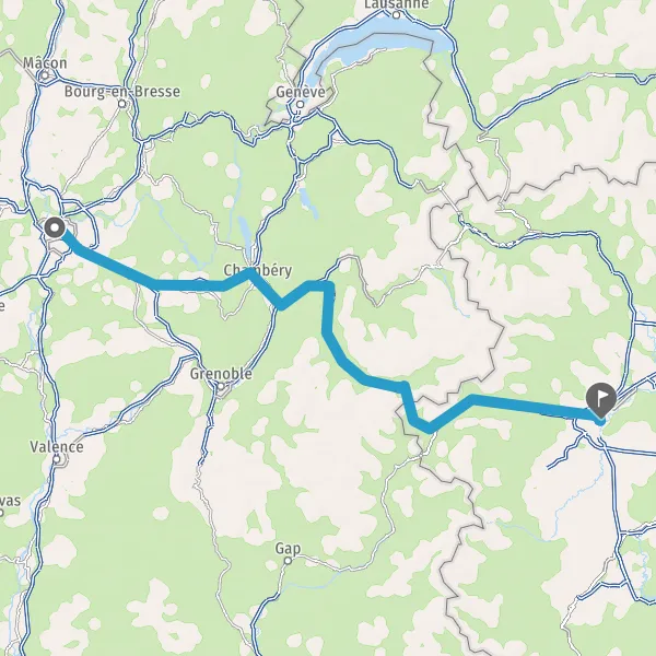 Prendre à droite et rejoindre A43 E70. Continuer sur 65 kilomètres
