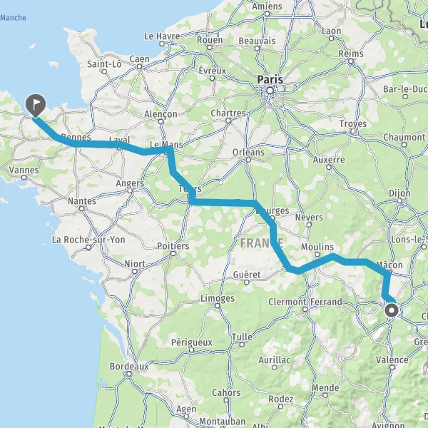 Prendre à droite et rejoindre A85 E604. Continuer sur 105 kilomètres