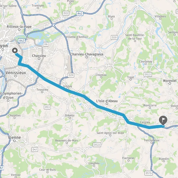 Continuer et rejoindre A43 E711. Continuer sur 38 kilomètres