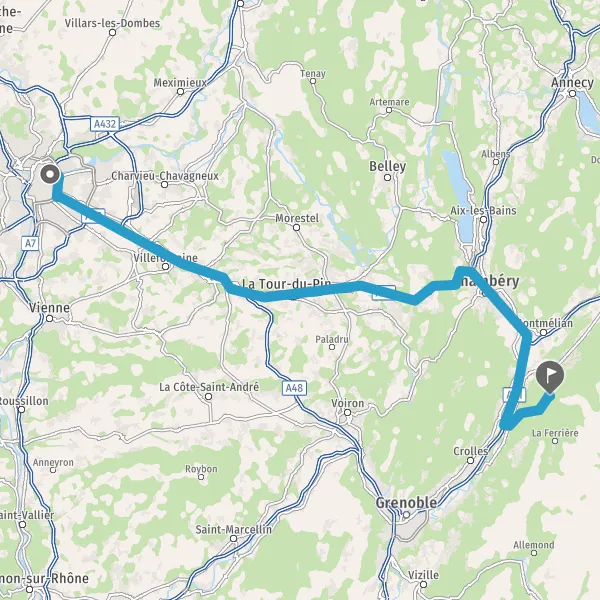 Continuer et rejoindre N201 E712 E70 (Avenue du Bourget-du-Lac). Continuer sur 13 kilomètres