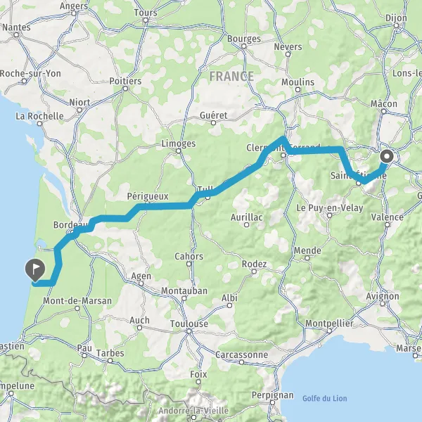 Prendre à droite et rejoindre A63. Continuer sur 76 kilomètres