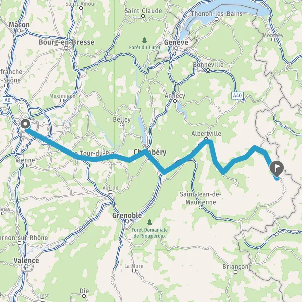 Prendre à droite et rejoindre A43. Continuer sur 19 kilomètres