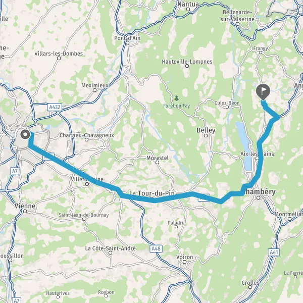 Prendre à droite et rejoindre A43 E711 E70. Continuer sur 21 kilomètres