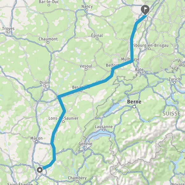 Prendre à droite et rejoindre A36 E60. Continuer sur 125 kilomètres