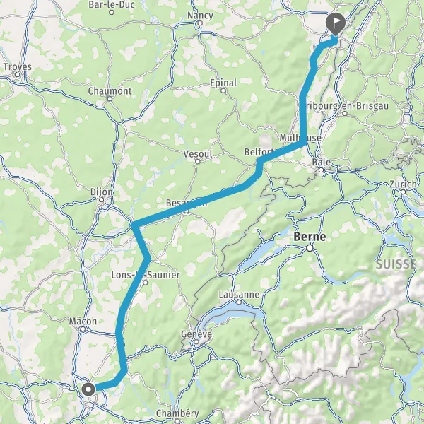 Prendre à droite et rejoindre A36. Continuer sur 45 kilomètres
