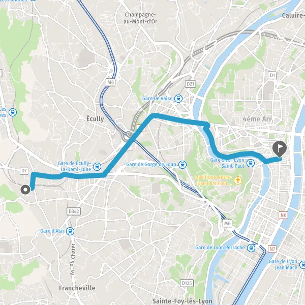 Avec le mode voiture, vous pouvez configurer vos options (type de véhicule, autoroute ou non, péage ou non, distance la plus courte), tout en ayant accès aux infos de circulation grâce à notre service d'info-trafic en temps réel. Ainsi faites des économies sur le coût ou la durée de votre voyage, en trouvant le trajet Tassin-la-Demi-Lune Lyon adapté à vos besoins.