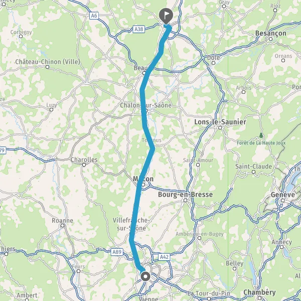 Continuer M6 (Autoroute du Soleil) sur 150 kilomètres