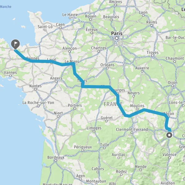 Prendre à droite et rejoindre A85 E604. Continuer sur 105 kilomètres