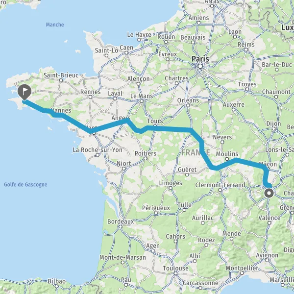 Prendre à droite et rejoindre A85 E604. Continuer sur 205 kilomètres