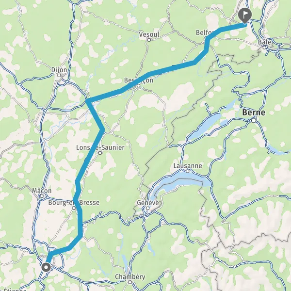 Prendre à droite et rejoindre A36 E60. Continuer sur 135 kilomètres