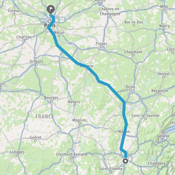 Prendre à droite et rejoindre A6. Continuer sur 294 kilomètres