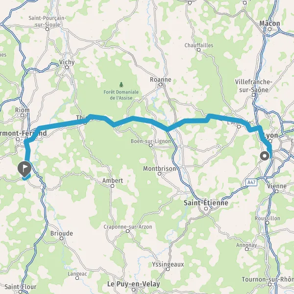 Continuer et rejoindre A89 E70. Continuer sur 77 kilomètres