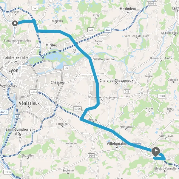 Prendre à droite et rejoindre A46 E15. Continuer sur 2,5 kilomètres