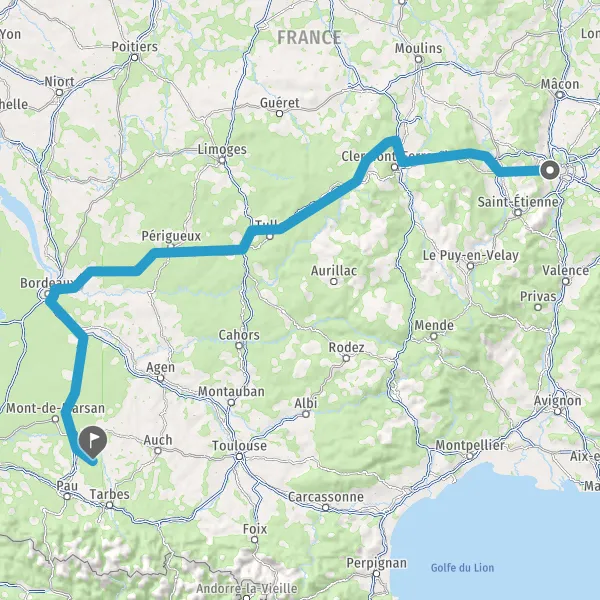 Prendre à droite et rejoindre A65. Continuer sur 105 kilomètres