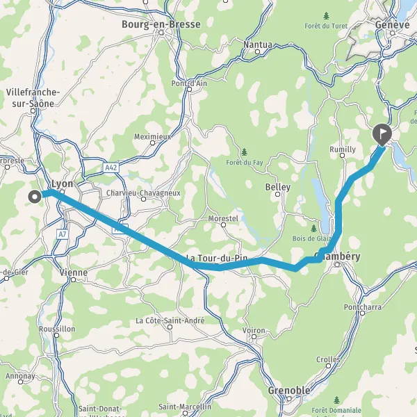Continuer et rejoindre A43 E711. Continuer sur 38 kilomètres