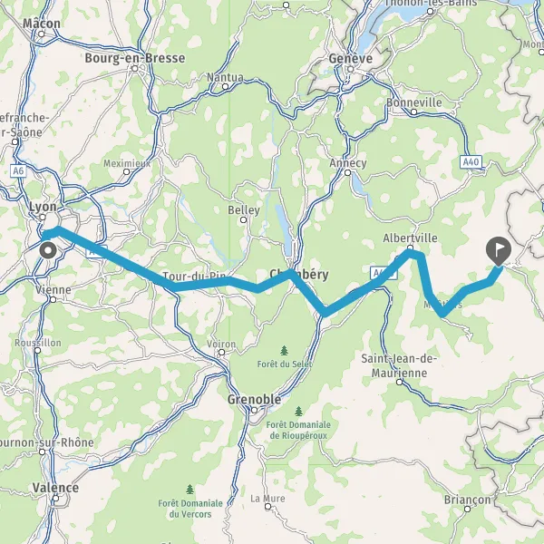 Prendre à droite et rejoindre A43. Continuer sur 19 kilomètres