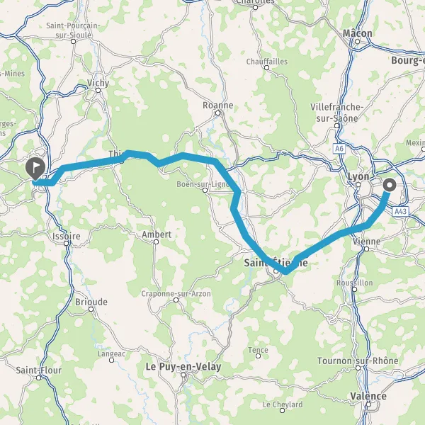 Continuer et rejoindre A89 E70. Continuer sur 77 kilomètres
