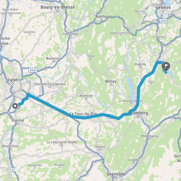 Prendre à droite et rejoindre A43 E711 E70. Continuer sur 34 kilomètres