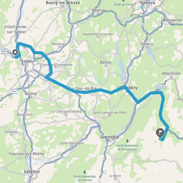 Prendre à droite et rejoindre A43. Continuer sur 19 kilomètres