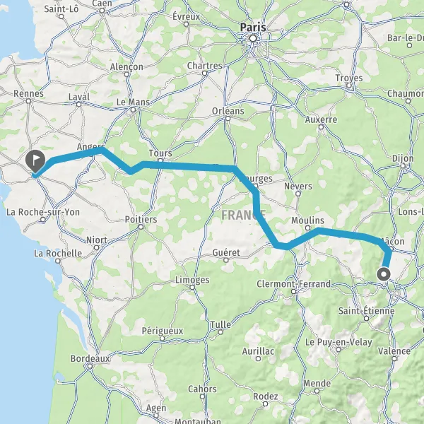 Prendre à droite et rejoindre A85 E604. Continuer sur 205 kilomètres