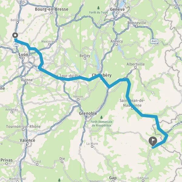 Prendre à droite et rejoindre A43. Continuer sur 19 kilomètres