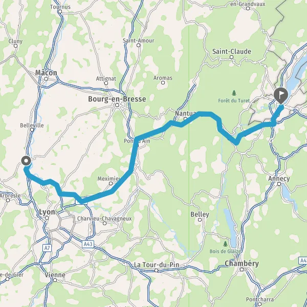 Prendre à droite et rejoindre A42. Continuer sur 40 kilomètres