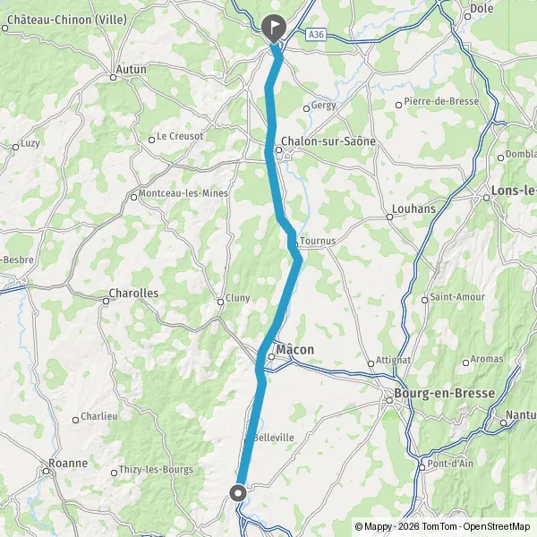 Prendre à gauche et rejoindre A6 E15. Continuer sur 114 kilomètres