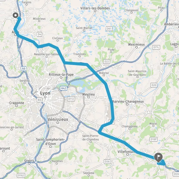 Prendre à droite et rejoindre D1006 (Rond-Point des Buissières). Continuer sur 140 mètres