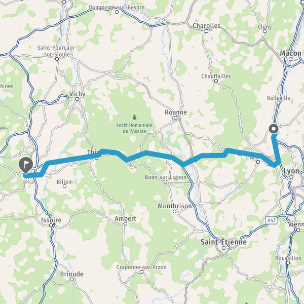 Continuer et rejoindre A89 E70. Continuer sur 83 kilomètres