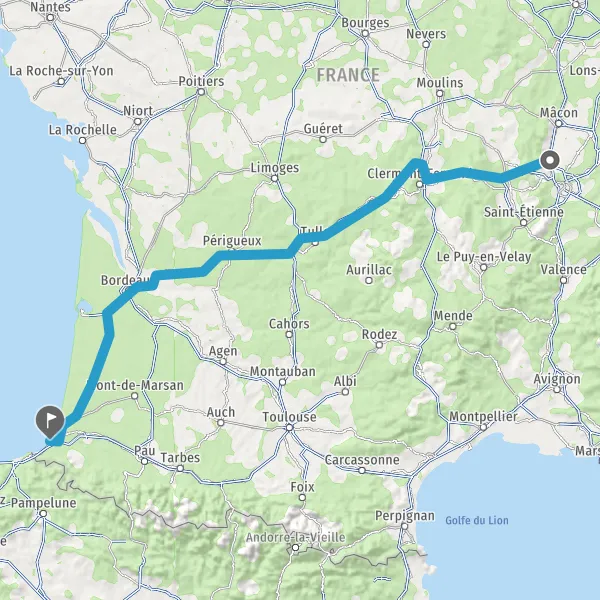 Prendre à droite et rejoindre A63. Continuer sur 183 kilomètres