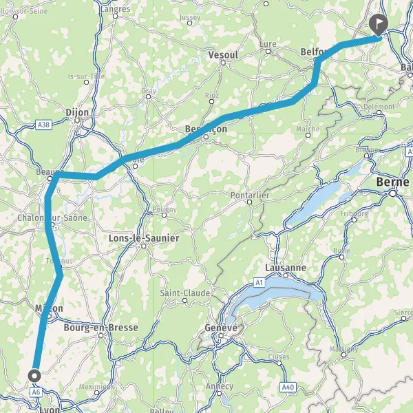 Prendre à droite et rejoindre A36. Continuer sur 165 kilomètres