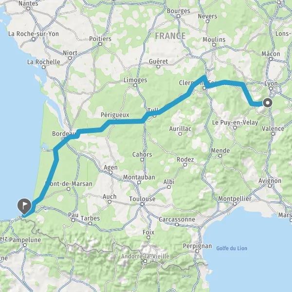 Prendre à droite et rejoindre A63. Continuer sur 192 kilomètres
