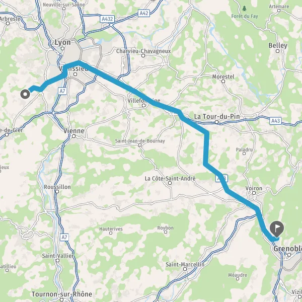 Prendre à droite et rejoindre A48. Continuer sur 49 kilomètres