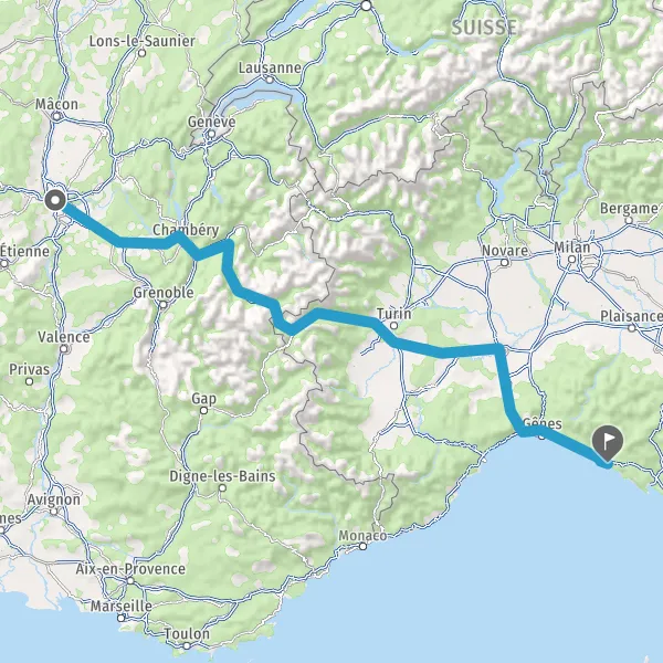 Prendre à droite et rejoindre A43 E70. Continuer sur 65 kilomètres