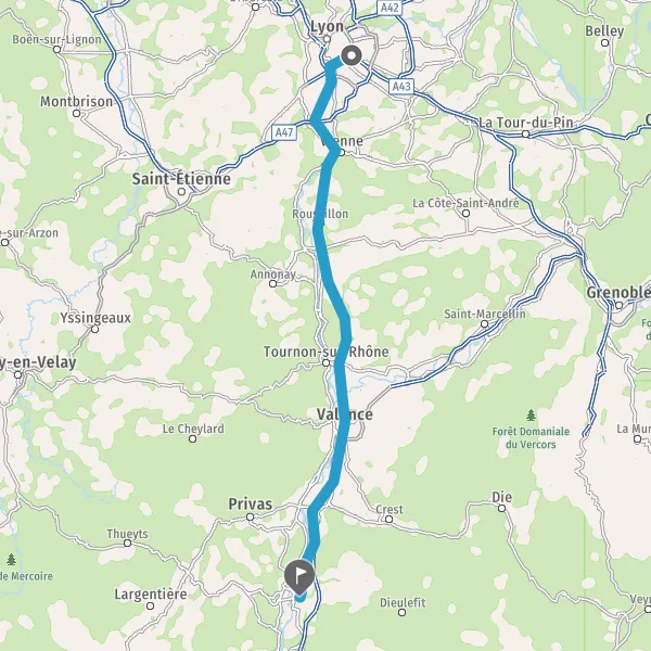 Prendre à droite et rejoindre A7. Continuer sur 124 kilomètres