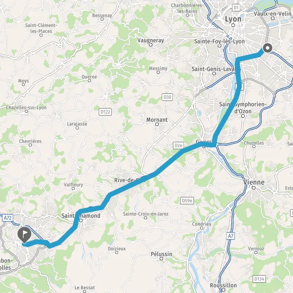 Prendre à droite et rejoindre A72. Continuer sur 1 kilomètre
