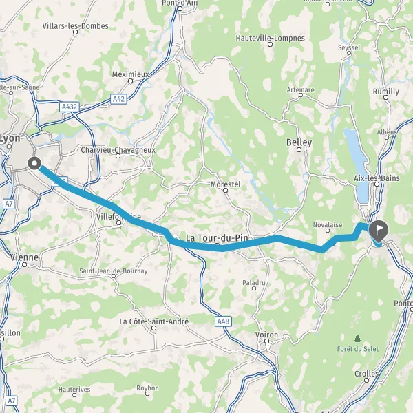 Prendre à droite et rejoindre A43 E70. Continuer sur 8,8 kilomètres