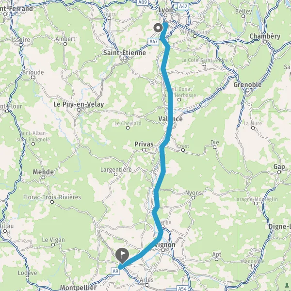Prendre à droite et rejoindre A9 E15. Continuer sur 54 kilomètres
