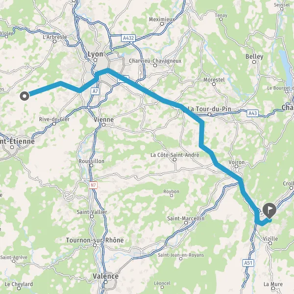 Prendre à droite et rejoindre A48. Continuer sur 51 kilomètres