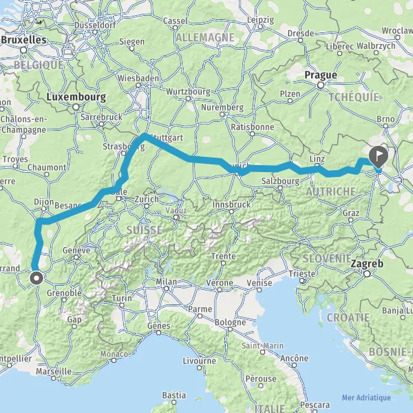 Prendre à droite et rejoindre A36. Continuer sur 236 kilomètres