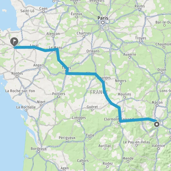 Prendre à droite et rejoindre A85 E604. Continuer sur 105 kilomètres