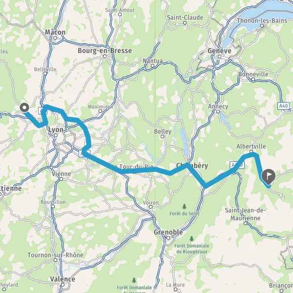 Prendre à droite et rejoindre A43. Continuer sur 19 kilomètres