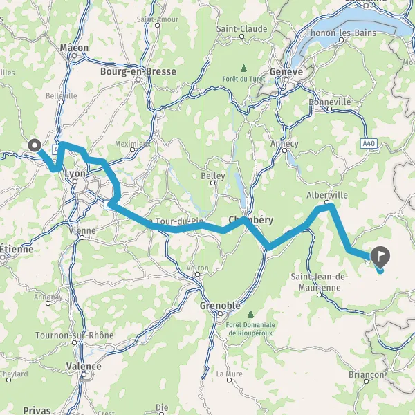Prendre à droite et rejoindre A43. Continuer sur 19 kilomètres