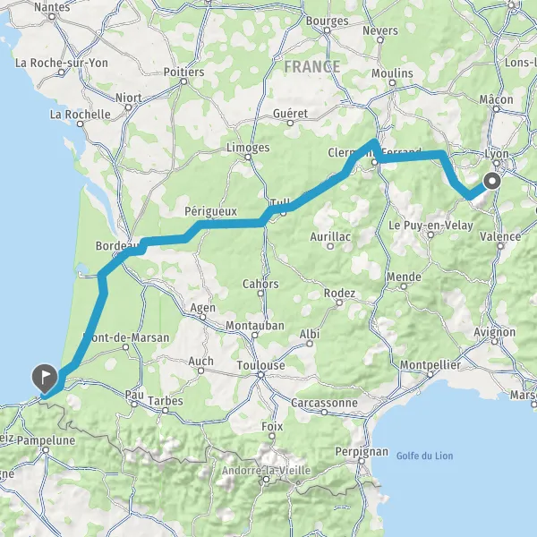 Prendre à droite et rejoindre A63. Continuer sur 192 kilomètres