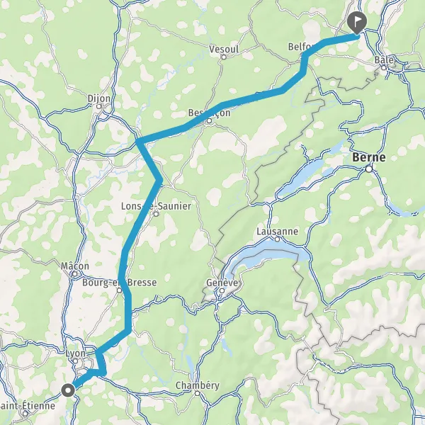 Prendre à droite et rejoindre A36 E60. Continuer sur 125 kilomètres
