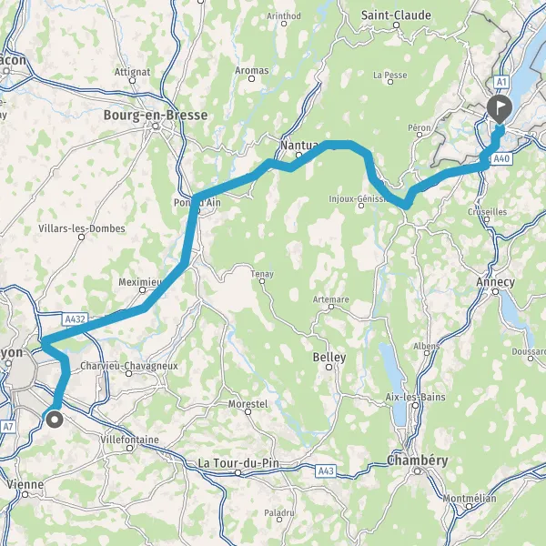 Autoroute Blanche-Tunnel de Chamoise Autoroute Blanche-Tunnel de Saint-Germain Autoroute Blanche-Tunnel de Châtillon Autoroute Blanche-Tunnel du Vuache Payer 18,90 € (Péage Viry) 70 km